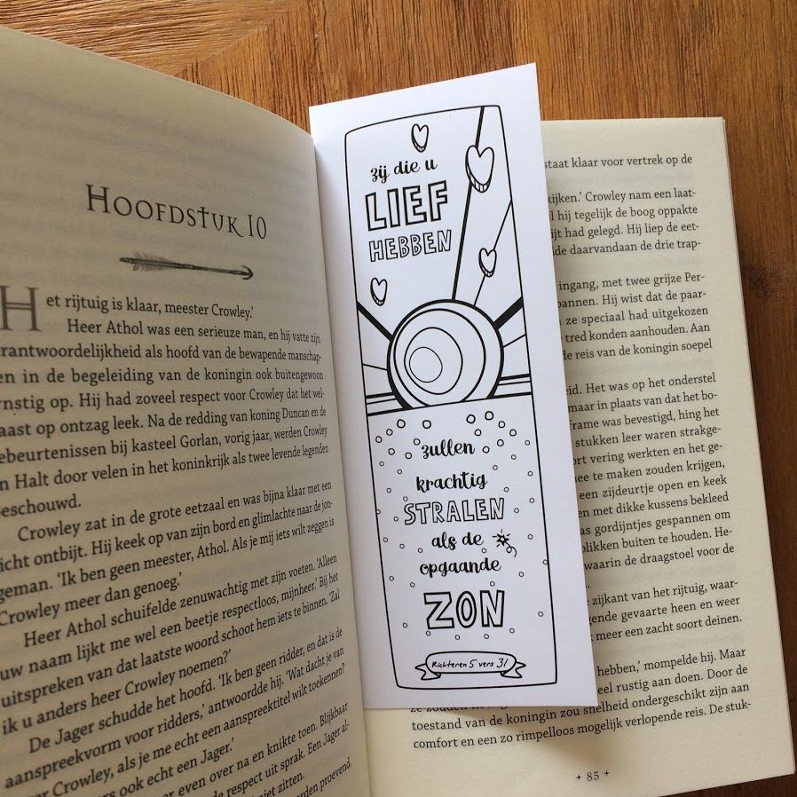 4 blije boekenleggers van 6,5 x 17,5 cm, met teksten uit Lucas, Psalmen en Richteren. Zelf in te kleuren en te versieren zoals jij het wilt. Leuk voor in al je favoriete boeken of bijbel. Of om iemand anders blij mee te maken.