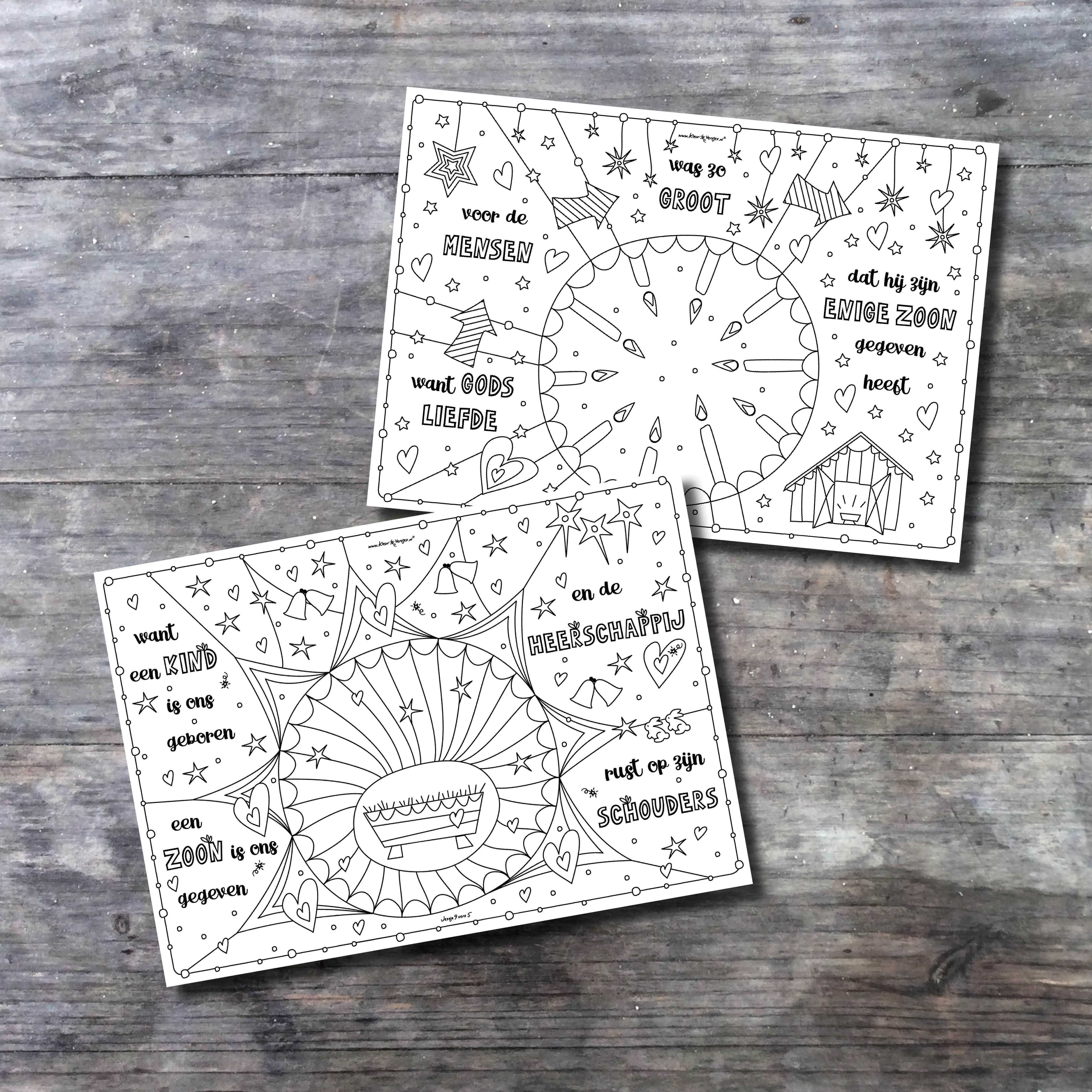Set van 2 prachtige kerst placemats ontworpen op A3 formaat. Het zijn digitale PDF files die je in je mailbox ontvangt. Vervolgens kan je ze zelf op A3 printen voor je kinderen. Dus géén extra verzendkosten 🙂